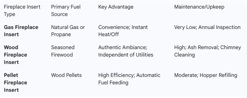 Selecting the right fireplace insert hinges on the available fuel sources. We will explore the three main types. For clarity, the choice impacts maintenance, cost, and overall warmth.